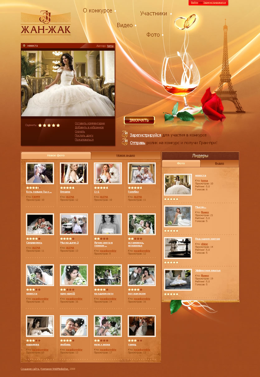 Условие участия в этом конкурсе — заснять на камеру или телефон самые яркие, смешные и красивые свадебные моменты и опубликовать их на ресурсе. Победителем станет тот кто больше всего наберет голосов и получит приз от компании «Алеф Виналь».