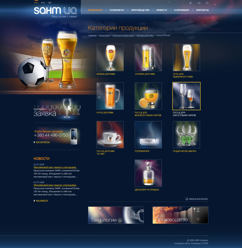 Придуманная нами концепция для сайта, подчеркивает особенность и неповторимость каждого вида продукции от компании «ЗАМ УКРАИНА».