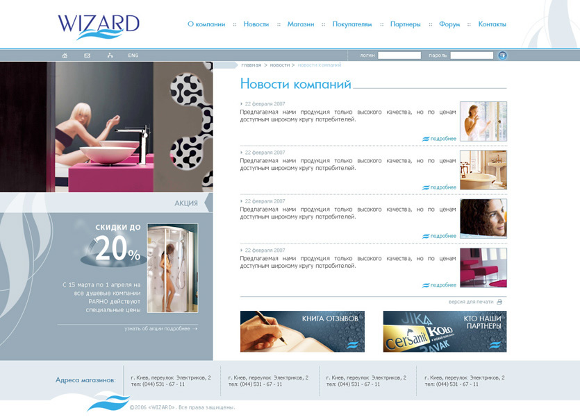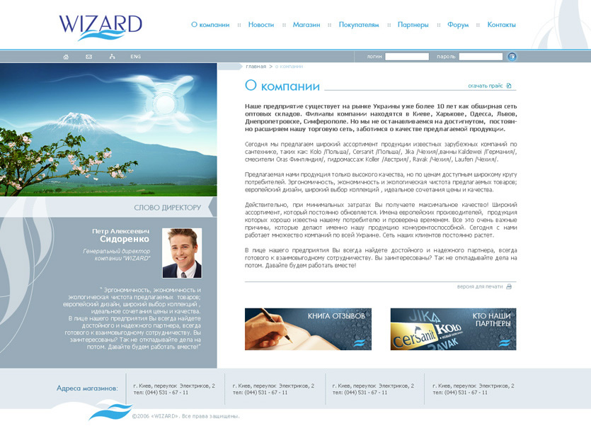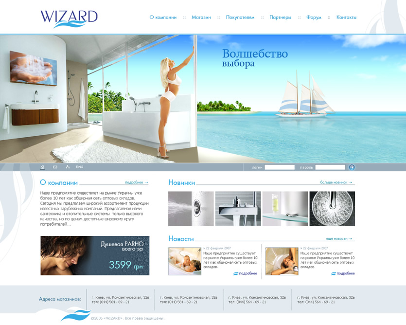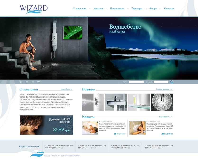 Как и полагает быть интернет-магазину, сайт Компании «Wizard» характеризуется уникальным дизайном, высокой функциональностью и удобством в использовании.